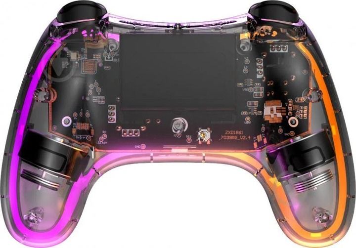 Геймпад має трендовий дизайн з кристально прозорим корпусом, який у поєднанні з RGB-підсвічуванням має ще більш ефектний вигляд. За допомогою 17 програмованих кнопок ви зможете виконувати рухи з неймовірною точністю та витонченістю. А подвійні вібромотори забезпечать реалістичний тактильний зворотний зв’язок, створюючи відчуття повного занурення.