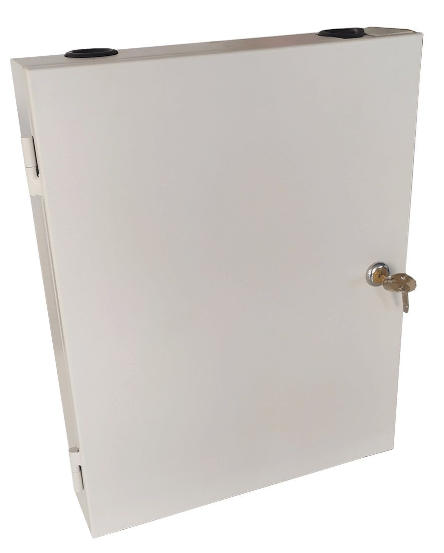 Герметичний оптичний бокс Abee (метал) настінного монтажу на 8 адаптерів LC Duplex та сплайс-касетою на 24 волокна (OptiBox-8LCDU-24-metal)