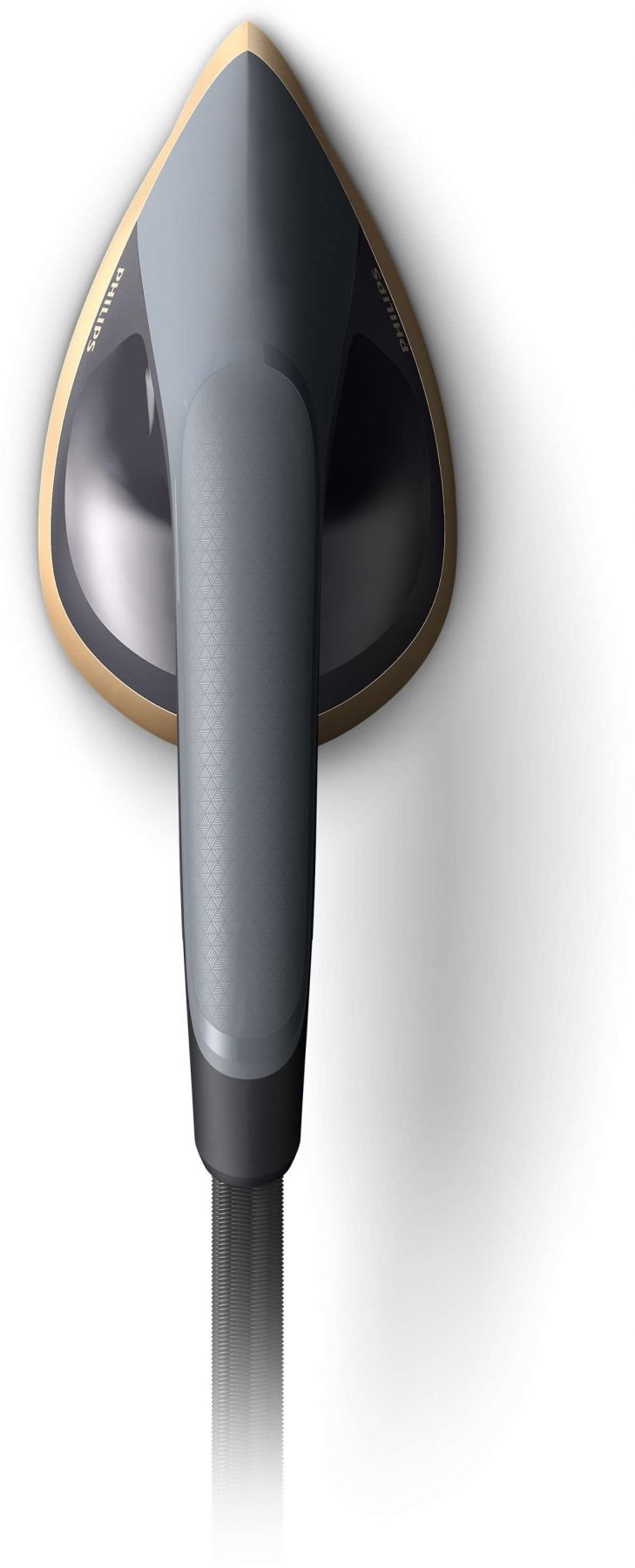 Ергономічна головка Iron+, яка вдвічі легша за головку звичайної парової праски, допоможе з комфортом розгладжувати складки на одязі.
