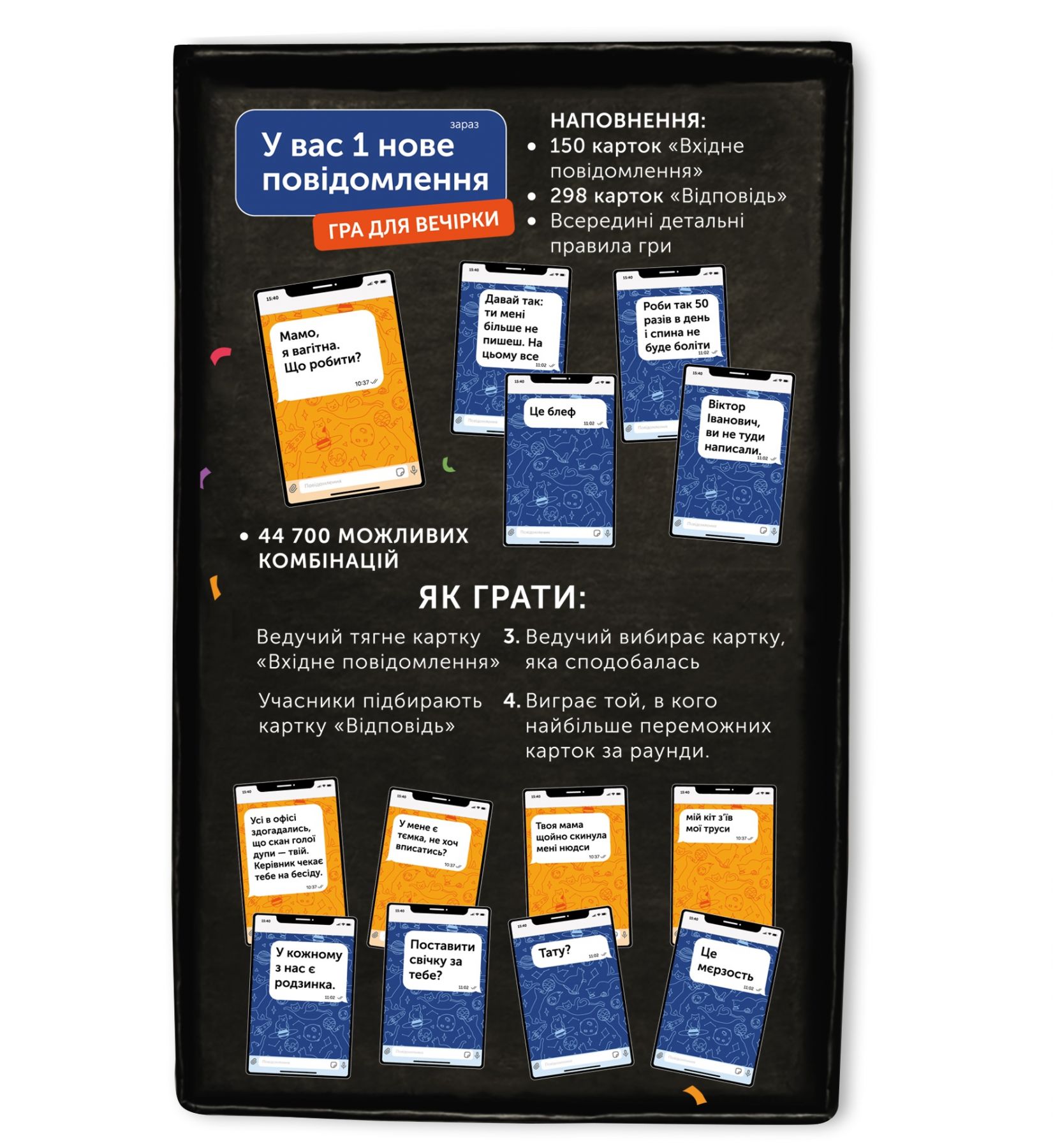 А, до речі, у вас ще 1 нове повідомлення: купуйте гру та беріть її із собою на всі дружні вечірки, бо круто провести час — ніколи не зайве!