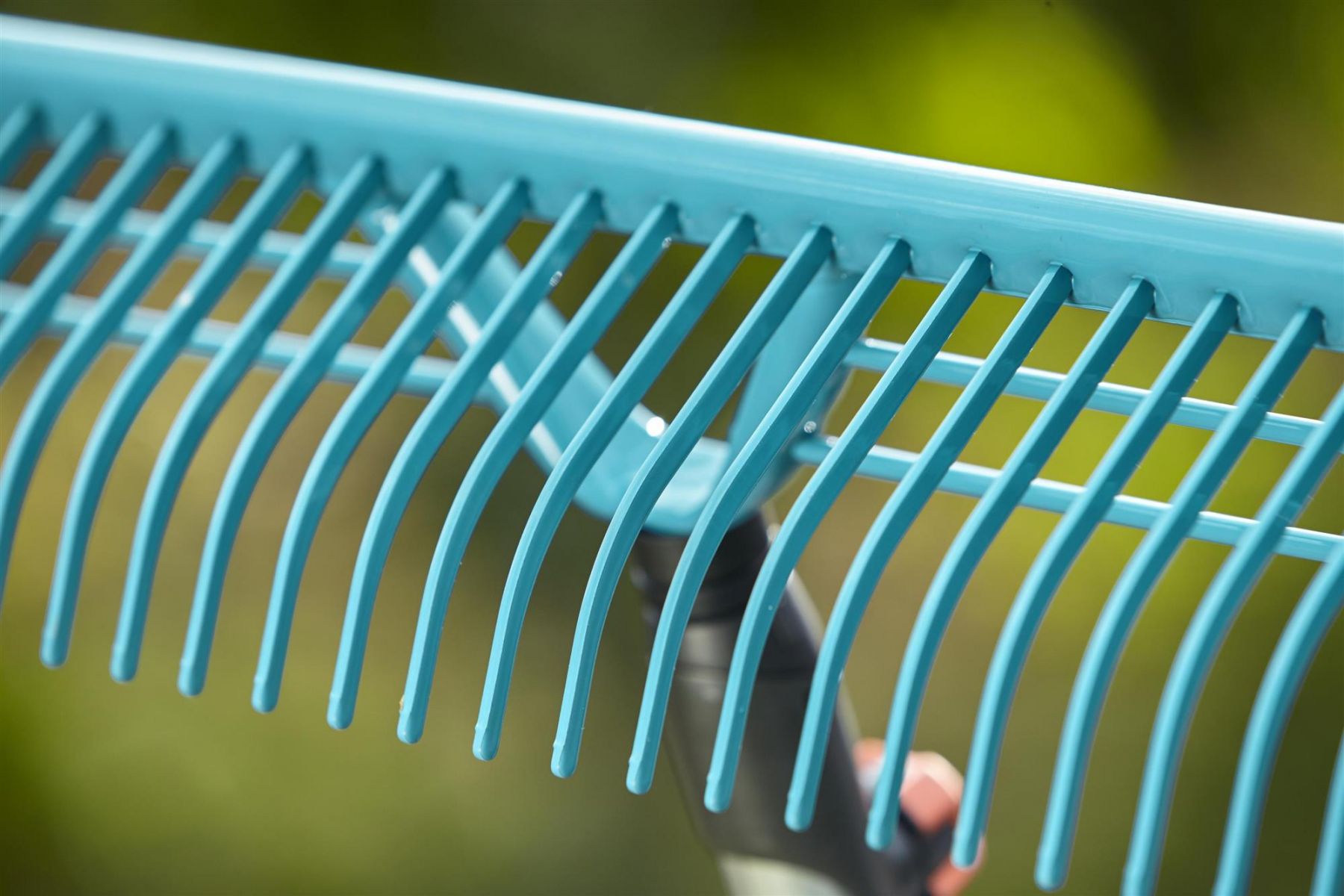 Цей інструмент комбісистеми GARDENA виготовлений з високоякісної сталі з дюропластиковим покриттям, що оптимально захищає продукт від корозії. Зубці в кількості 32 шт. мають спеціальну вигнуту форму в процесі згрібання добре захоплюють траву та листя, які затримуються у спеціальному відсіку для захоплення.