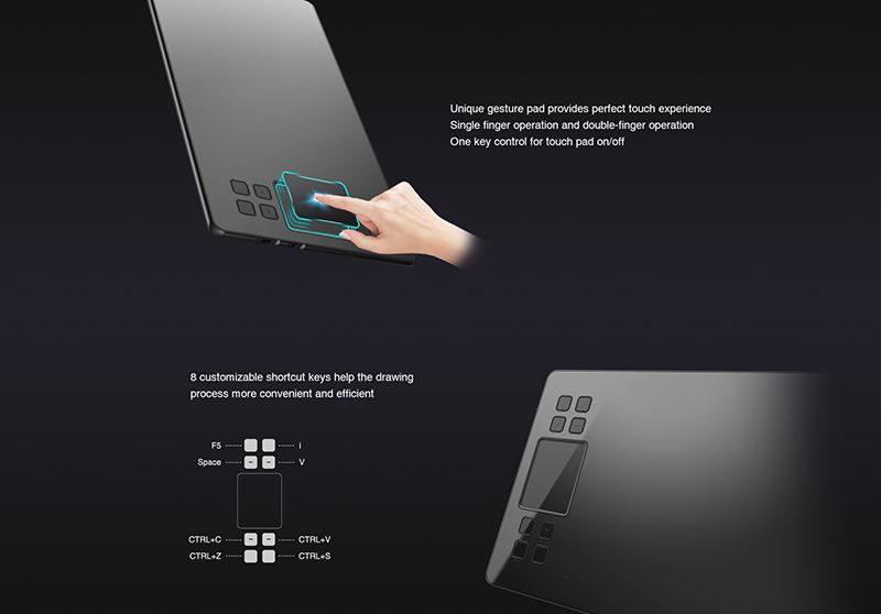 У моделі дігітайзера Veikk A50 є 8 гарячих клавіш, що налаштовуються на будь-яке поєднання на клавіатурі, перетворюючи малювання на більш зручний і ефективний процес.