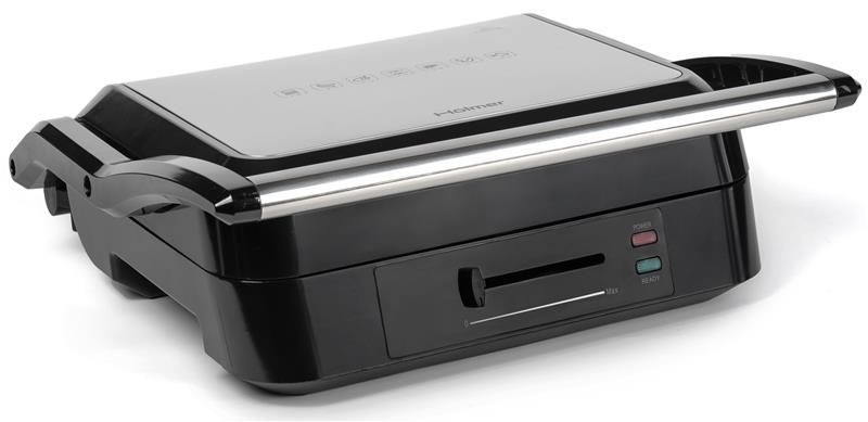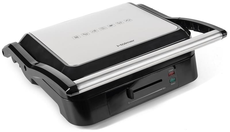 З контактним грилем Holmer HCG-20R легко готувати як м’ясні, так і овочеві або рибні страви, а також розігрівати пироги, піцу або робити грінки. При використанні електрогрилю продукти готуються швидко, оскільки вони контактують із плитами одночасно з двох сторін, зберігаючи всі корисні властивості. Просто підберіть оптимальну температуру для ідеального прожарювання та виберіть одне з двох робочих положень пристрою.