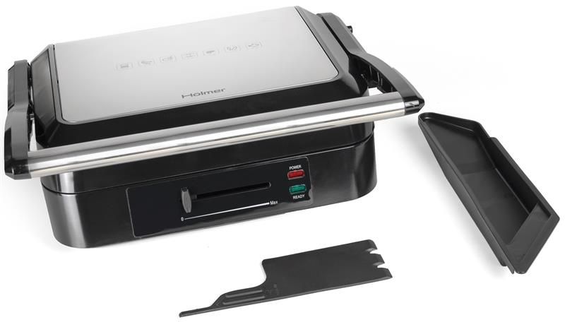 Електричний контактний гриль Holmer HCG-20R – універсальний помічник на кухні. З його допомогою можна приготувати не тільки ароматне барбекю, але й корисні, смачні страви без додавання олії, а також смажити м’ясо, рибу або овочі. Він зручний і функціональний, простий у догляді та експлуатації. Модель HCG-20R оснащена регулятором температури нагріву від 140 до 200°С, має знімні пластини з антипригарним покриттям, піддон для збирання жиру та притискну ручку з термоізоляцією. Гриль досить потужний (2200 Вт) та функціональний. Готувати з Holmer HCG-20R просто, смачно та легко.