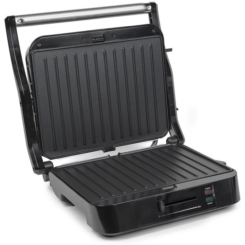 Кут відкриття конструкції досить широкий і становить 105°/180°, що дуже зручно для використання. Розклавши гриль горизонтально, з’являється додаткова площа для приготування смачних шедеврів.
