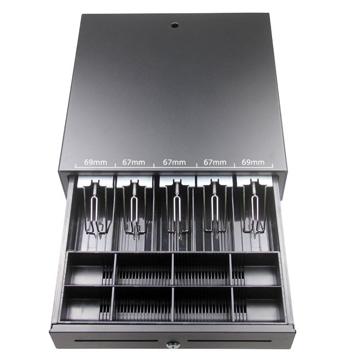 Prologix PR-CD-5B8C може використовуватися автономно, а також підключатися до іншого торгівельного устаткування – касових апаратів, POS-терміналів, принтерів для друку чеків. Скринька дуже легко висувається завдяки прикріпленим пластиковим роликам, які розміщені в спеціальних направляючих.