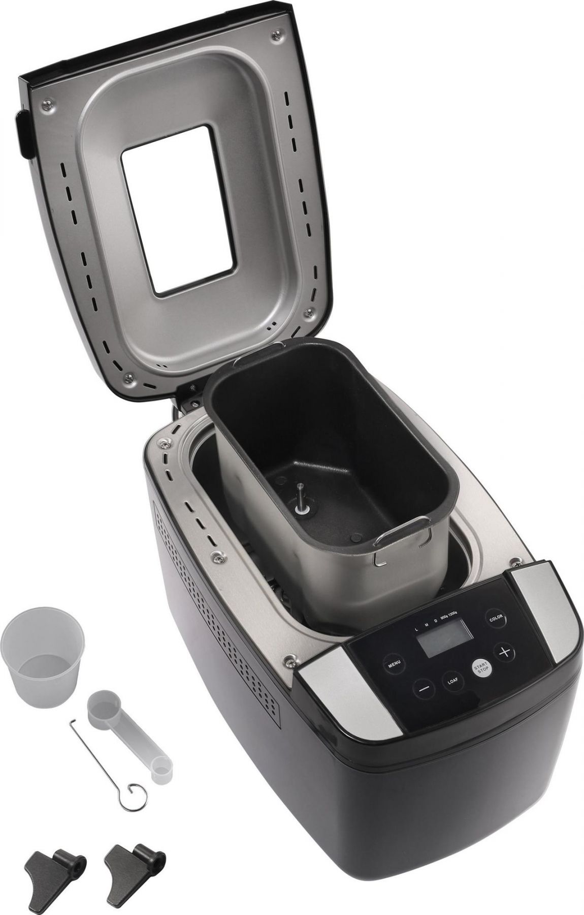 Насичений чорний колір цього кухонного апарату гармонійно доповнений сірими лініями, що вписується в приміщення з будь-яким інтер'єром. Корпус пристрою зроблений з міцного пластику, а сама форма для випікання з металу. Дуже зручна електронна панель управління хлібопічки Gorenje BM1210BK дасть змогу швидко і просто керувати всіма процесами приготування. Дисплей допоможе контролювати їх, а за створенням кулінарного шедевра можна спостерігати через оглядове вікно.