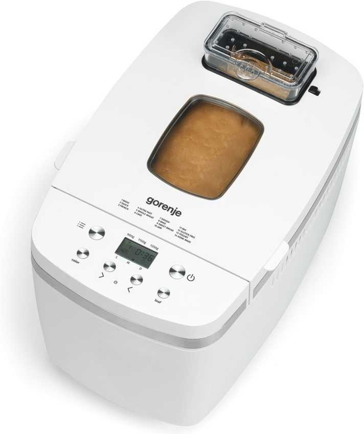 Хлібопічка Gorenje BM1350W - це інноваційний кулінарний інструмент, який пропонує широкий спектр функцій для приготування смачного і свіжого хліба вдома. Завдяки дисплею та оглядовому вікну можна легко контролювати процес приготування, спостерігаючи за розвитком смакоти всередині печі. Таймер дає змогу налаштувати час початку та завершення процесу, забезпечуючи гнучкість і комфорт використання.