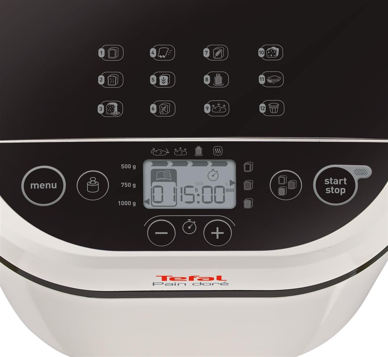 Хлібопічка Tefal Pain Dore PF210138 пропонує 12 автоматичних програм. Серед програм для хлібної випічки є й додаткові програми, що дають змогу готувати в цьому апараті ще й джем, каші, крупи. Крім базових і популярних сортів хліба (класичний, житній, французький) є режим для хліба без глютену, 2 режими швидкого випікання. Особливо порадує господинь режим замішування дріжджового тіста, що дасть змогу приготувати пельмені, піцу, пиріжки з меншими зусиллями.