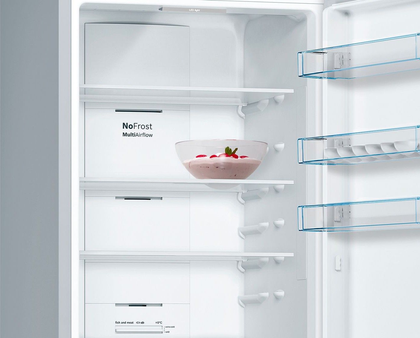 Розморожування вручну може бути дуже набридливим і трудомістким процесом. Завдяки холодильникам із системою NoFrost, Ви легко позбудетеся цієї проблеми! На відміну від традиційних холодильників, вологість повітря в холодильнику із системою NoFrost постійно збирається в центральному холодильному пристрої, регулярно розморожується автоматично. Конденсат, що утворюється просто виводиться назовні з холодильника, де він потім випаровується. У такий спосіб, система NoFrost постійно позбавляє Ваш холодильник льоду, а Вас потреби розморожувати вручну.