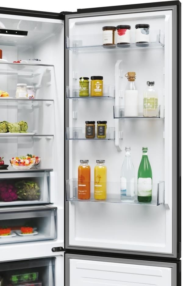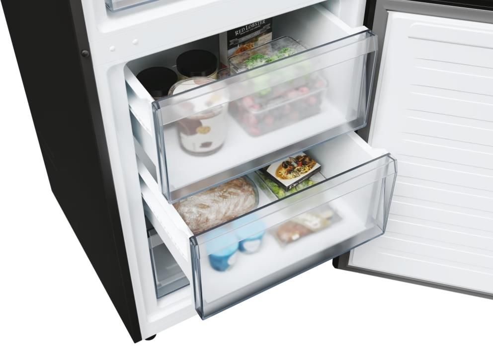 Надзвичайно велика, з саморегульованим рівнем вологості холодильна камера, щоб ніколи не бракувало місця для ваших фруктів та овочів, які завжди зберігатимуться за ідеальних умов без необхідності ручного втручання.