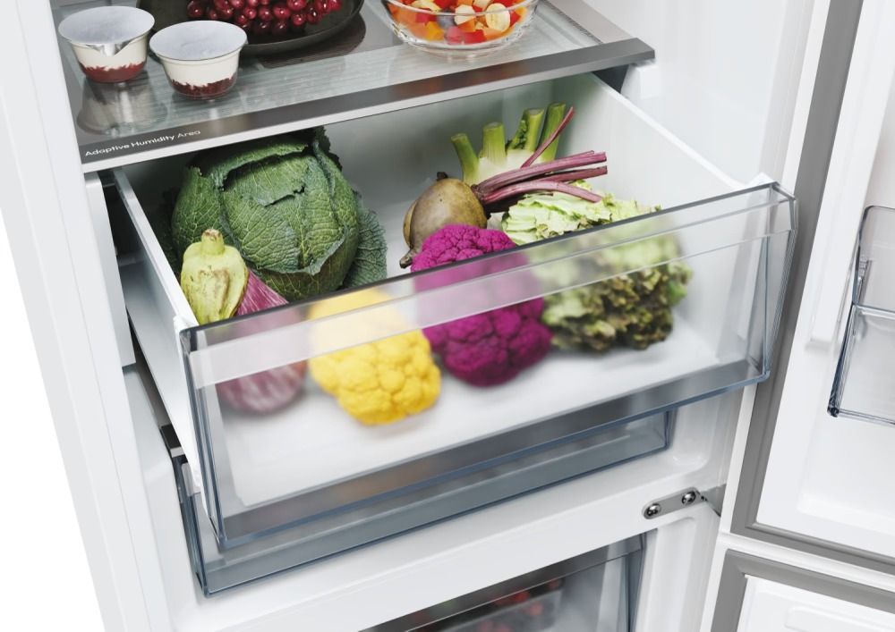 Надзвичайно велика, з саморегульованим рівнем вологості холодильна камера, щоб ніколи не бракувало місця для ваших фруктів та овочів, які завжди зберігатимуться за ідеальних умов без необхідності ручного втручання