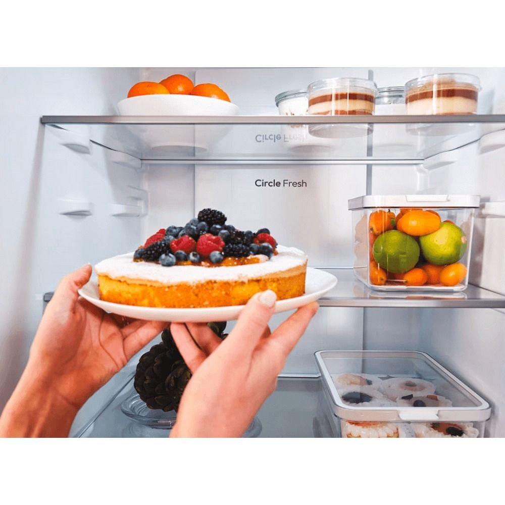 Бічний потік повітря м’яко огортає продукти, запобігаючи їх висиханню та заморожуванню, дозволяючи зберігати продукти в будь-якому місці холодильника