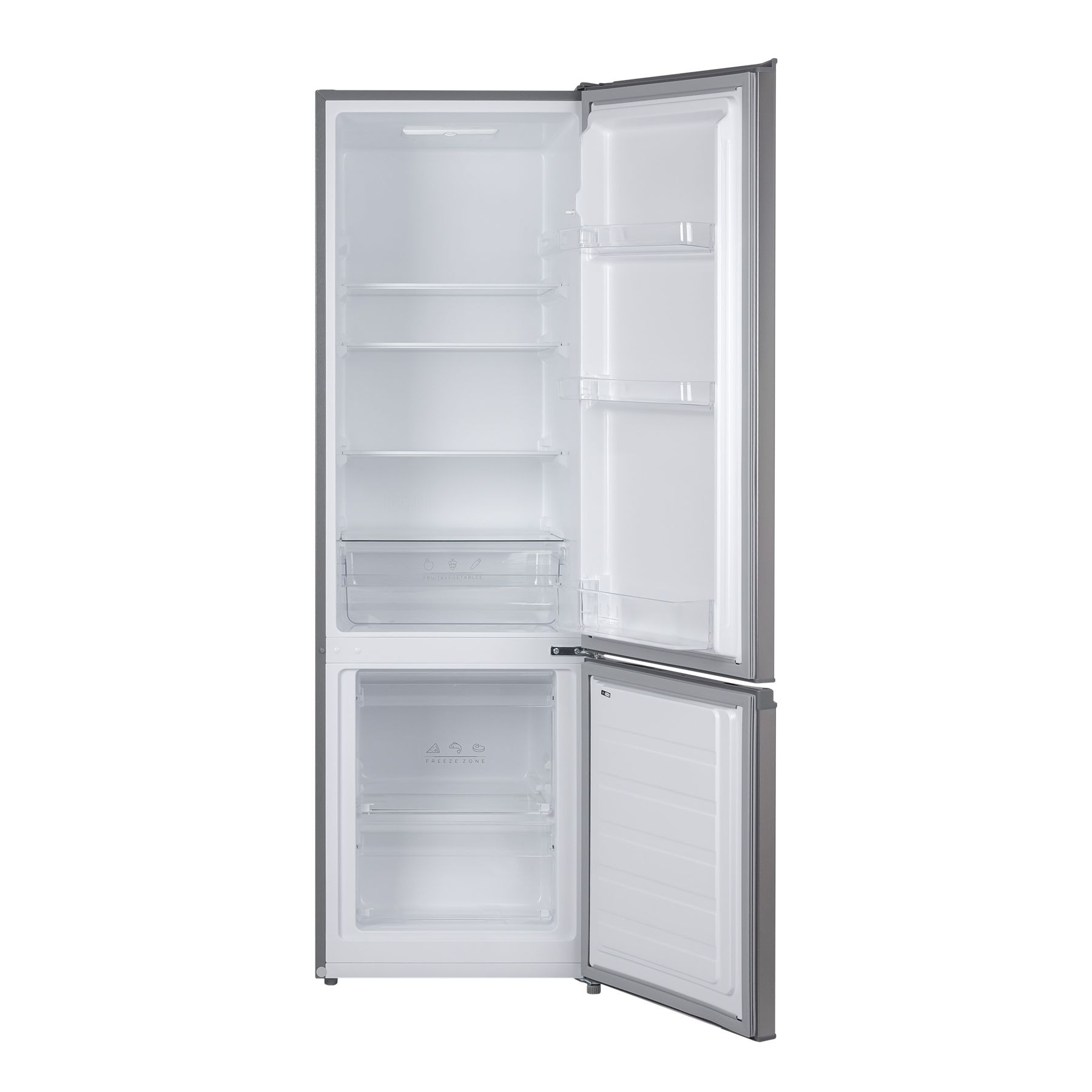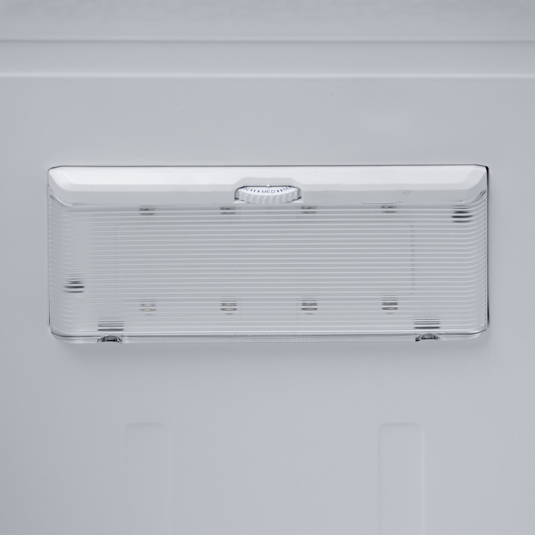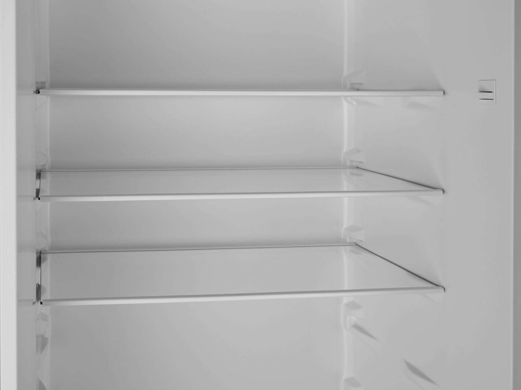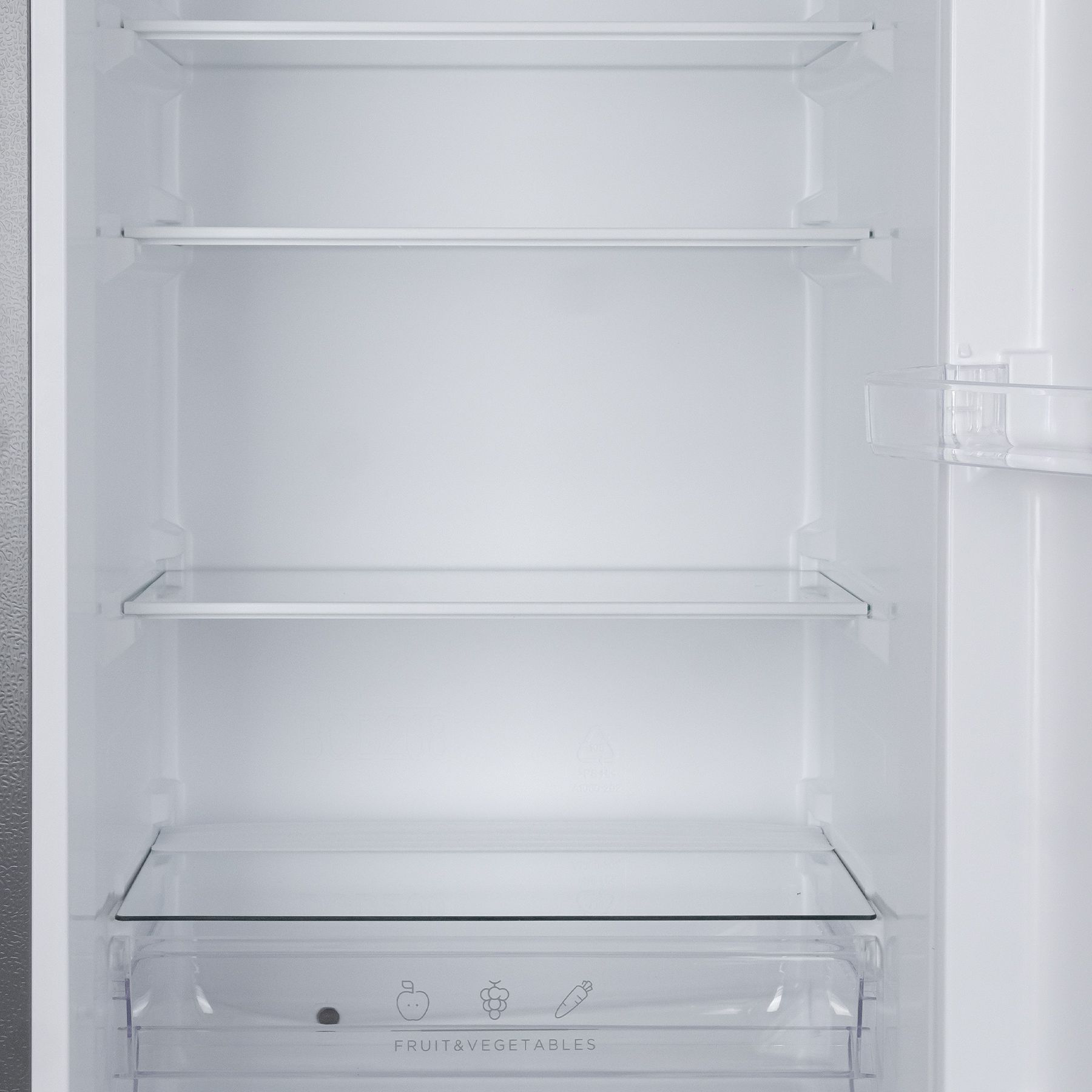 Холодильний відсік має напівпрозорий плафон лампи, що не перешкоджає LED-освітленню, яке розташоване зверху. Три полиці виконані зі скла з пластиковим огранюванням. Є три продуктові пластикові шухляди, один кріспер-бокс із пластику зі скляною кришкою та пластиковим обмеженням. Морозильна камера - це три ящики для заморожування продуктів. За бажання можна додати лоток морозилки, а за додаткову суму - підставку для заморожування льоду й окремий відсік для неї.