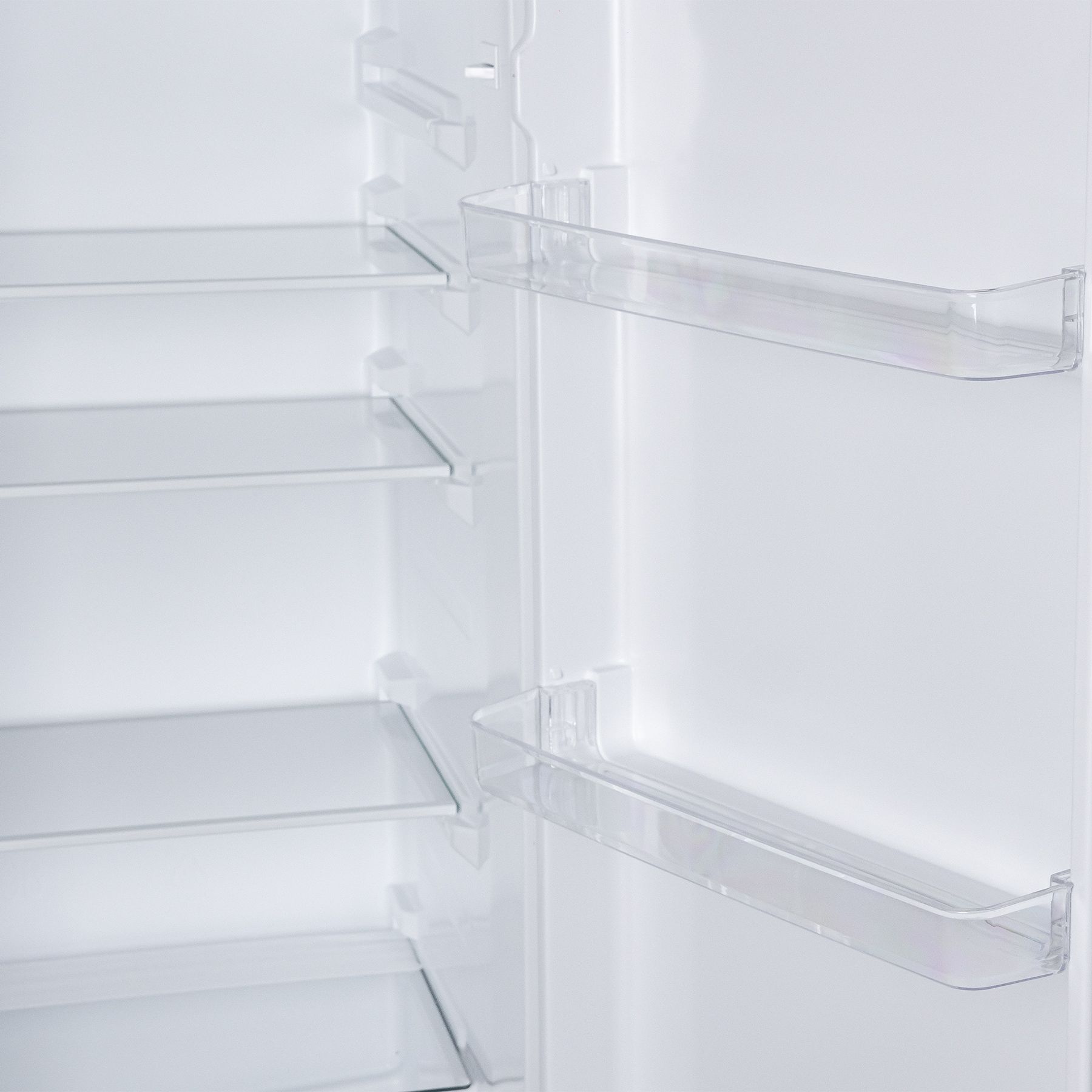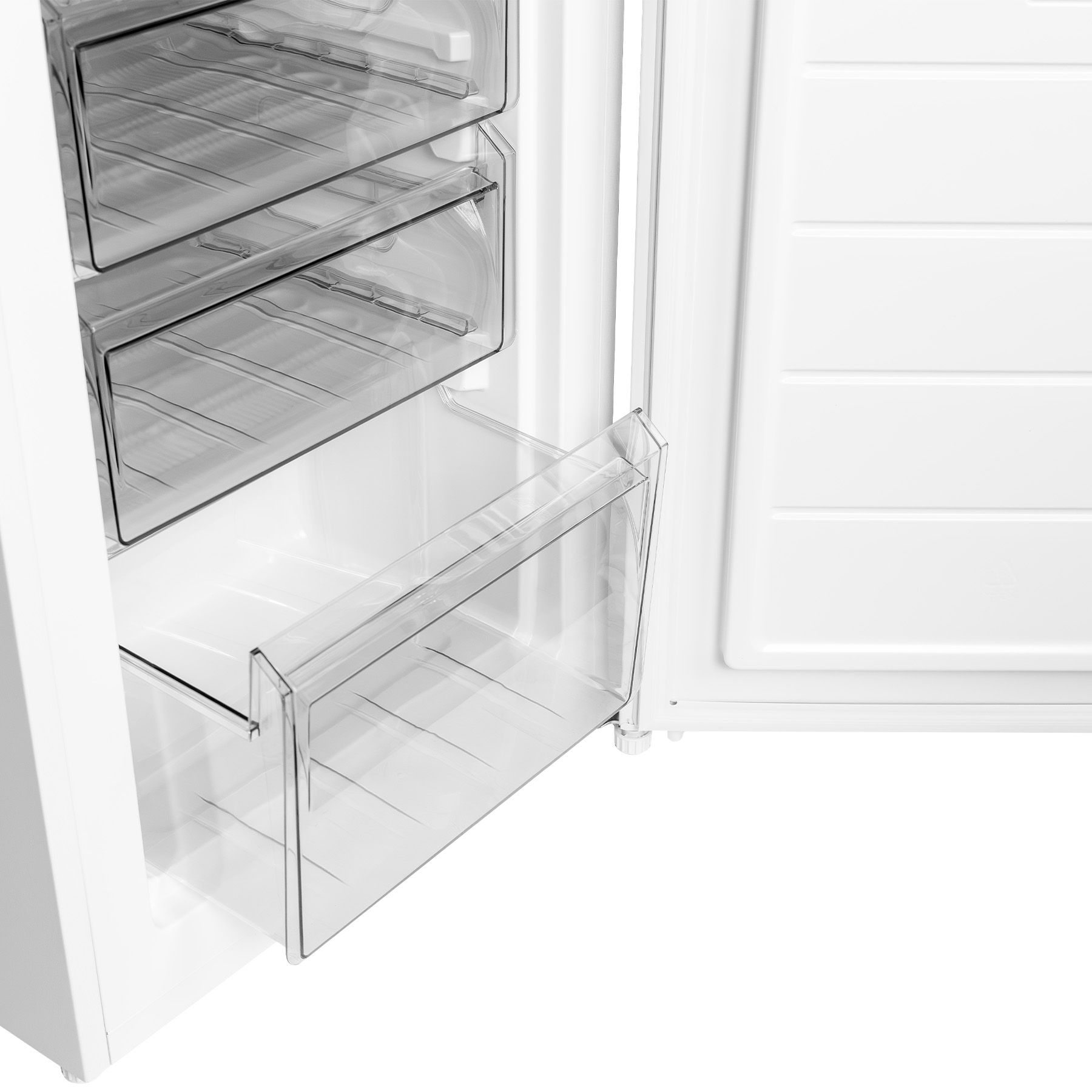 Є механічне керуванння і ручний процес розморожування, а також статистична охолоджувальна система. Плоский дизайн дверей не залишить байдужим нікого. Двері та корпус зроблені з металу, прихована ручка - із пластику. Верхній матеріал - пластик. Весь користувацький інтерфейс розташований всередині, тип LED. Усередині холодильника можна налаштувати потрібний температурний режим. Є додаткова функція відключення відсіку для збереження свіжості.