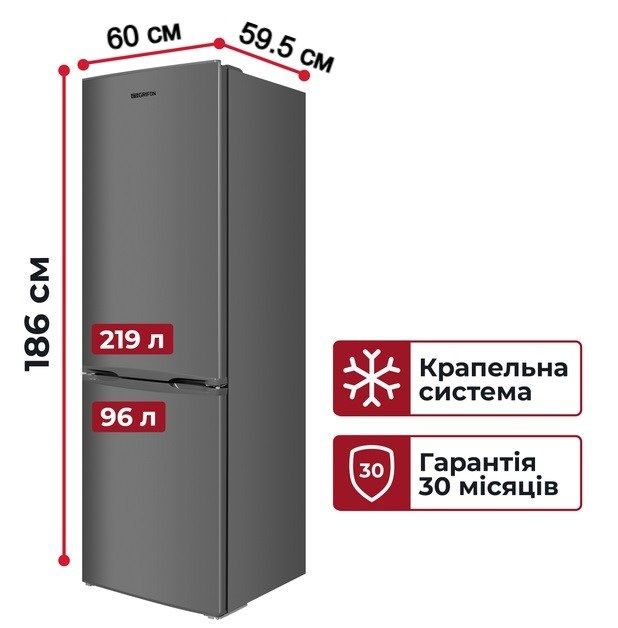 Окремо стоячий холодильник з морозильною камерою (комбінований) від Grifon - ідеальне співвідношення якості та ціни. Зовнішній вигляд - тотальний мінімалізм, впишеться в інтер'єр будь-якої кухні.