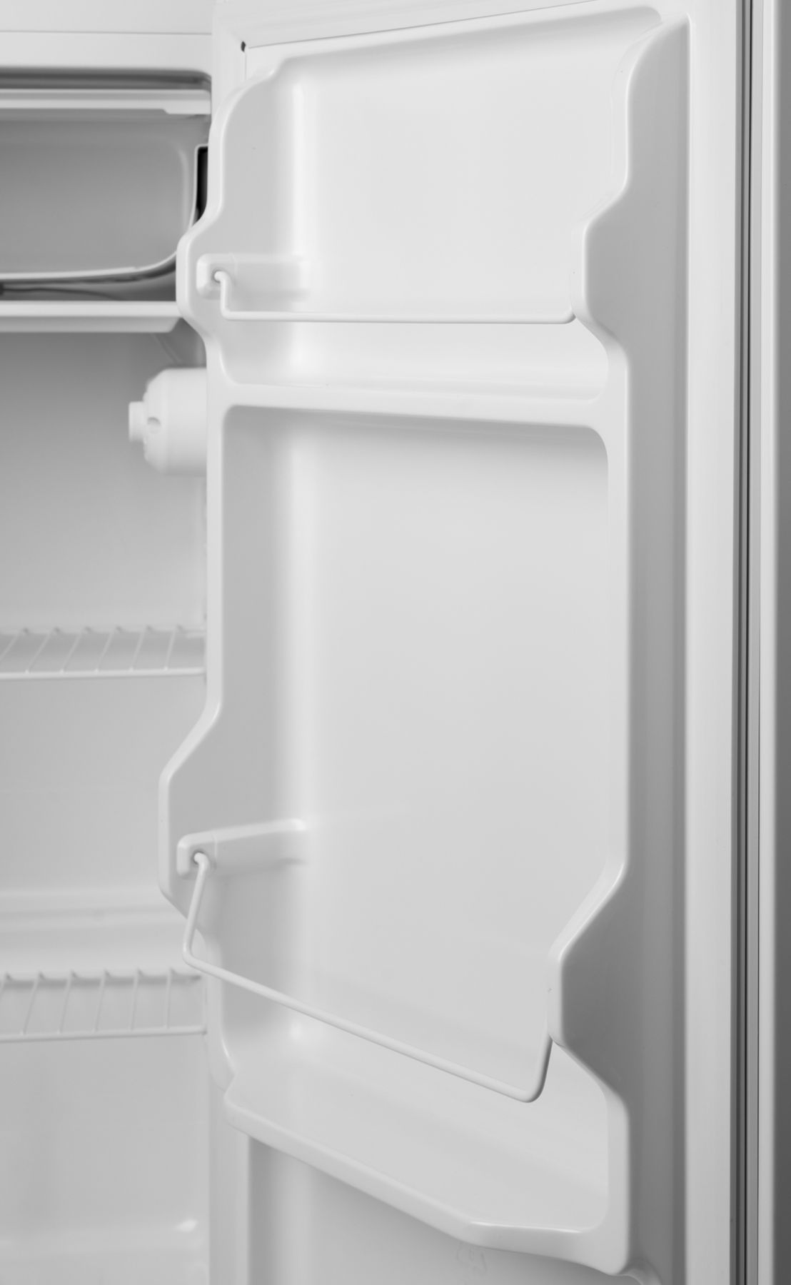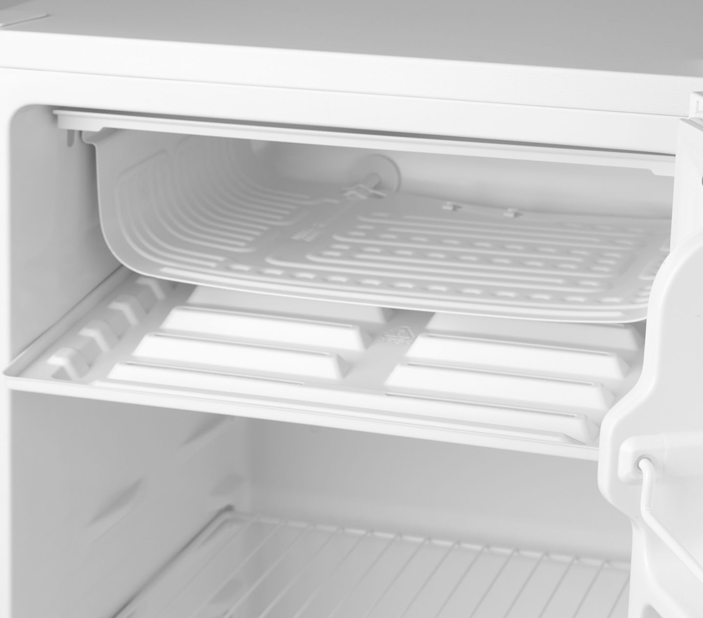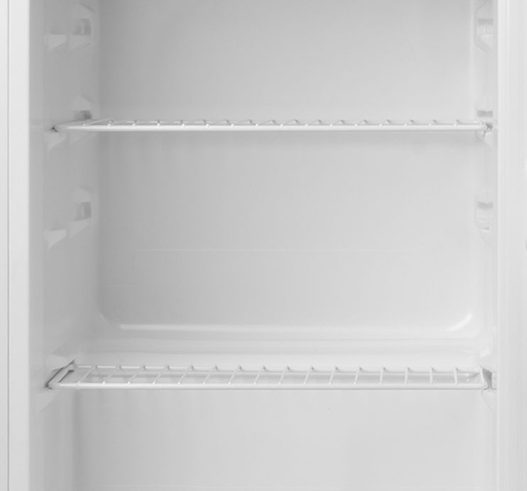 Дві полиці у вигляді металевих решіток можна встановити як вам зручно. Випарник типу De-frost (при досягненні потрібної температури відбувається автоматичне відключення охолодження, лід починає танути). Функції розморожування як такої не передбачено. Зливний піддон виконаний з поліпропілену і розташований внизу, щоб затримати зайву воду після процесу танення. Усередині холодильник освітлюється лампою.