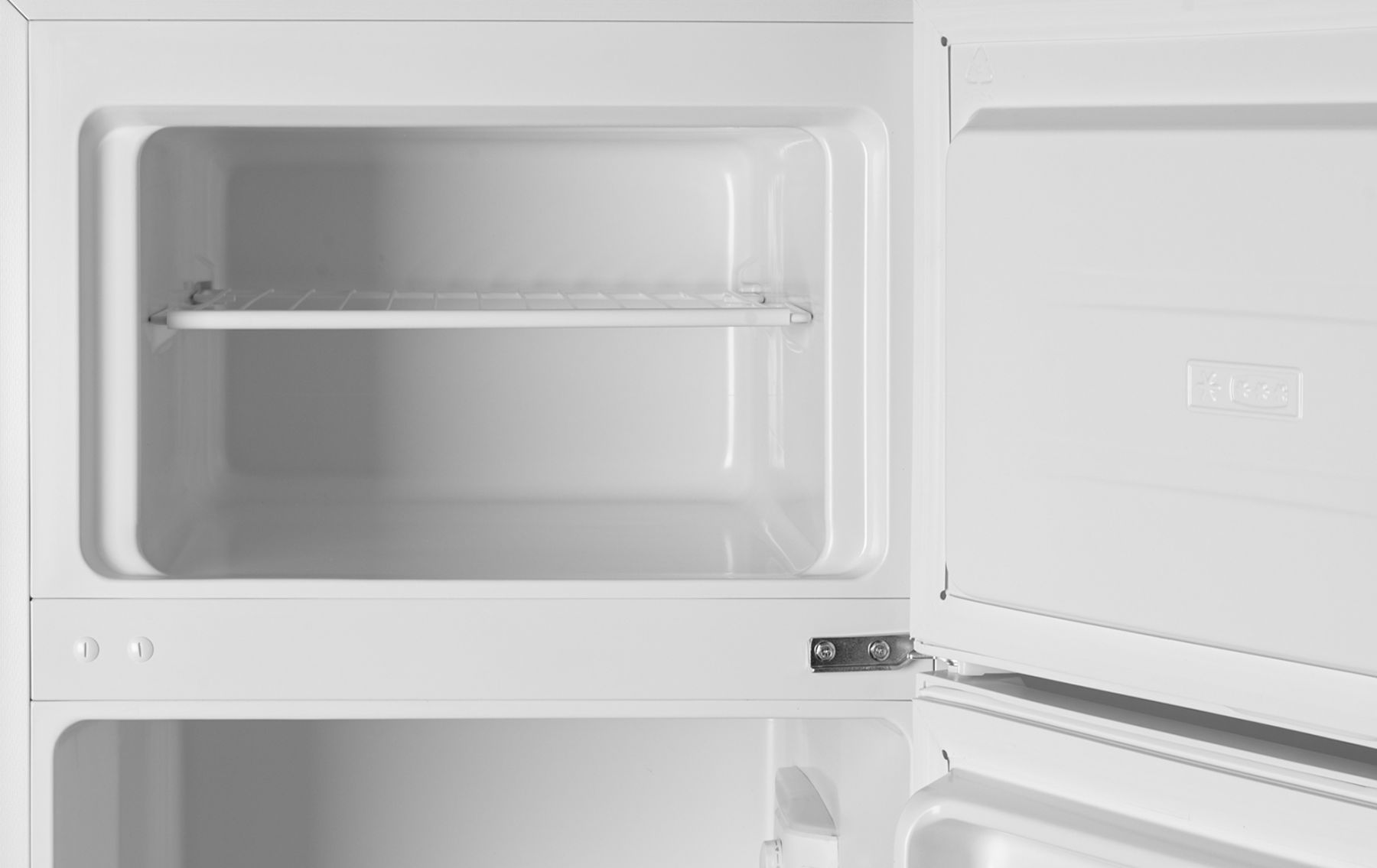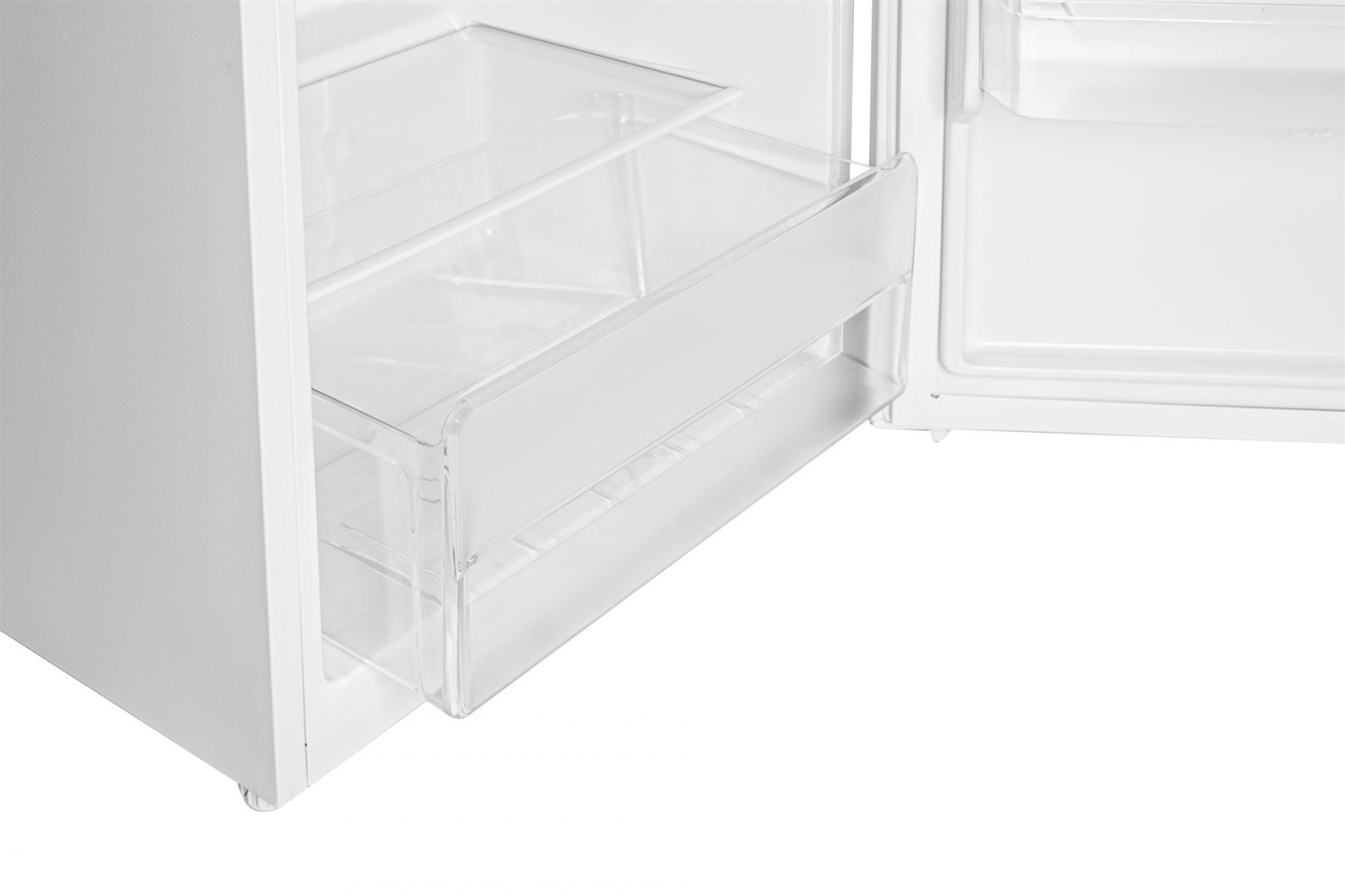 Холодильник оснащений одними дверима з втопленою (прихованою) ручкою для легкого відкривання і стильного дизайну (всі механізми заховані всередині). Дверна панель і корпус у білому кольорі, створюють враження чистоти. Внутрішнє освітлення допомагає швидко виявити продукти, які починають псуватися і викинути їх.