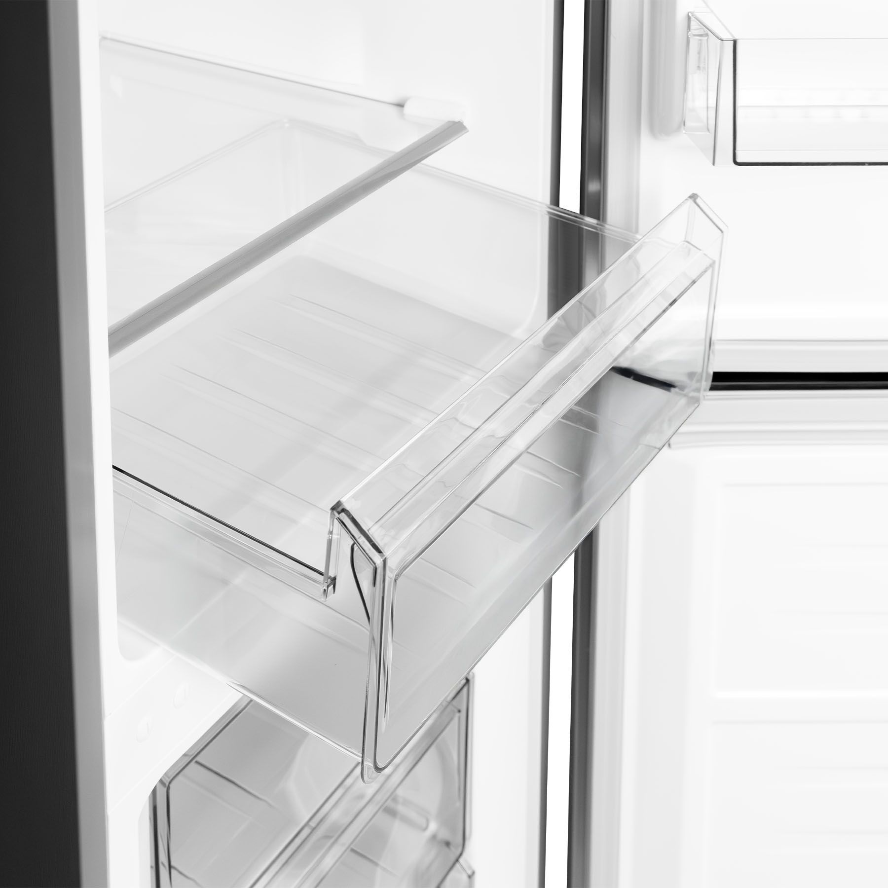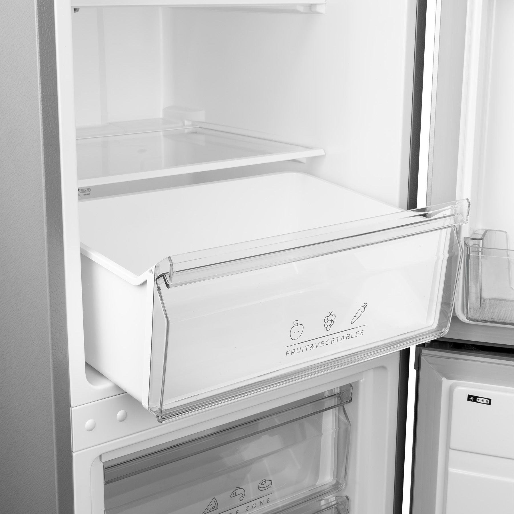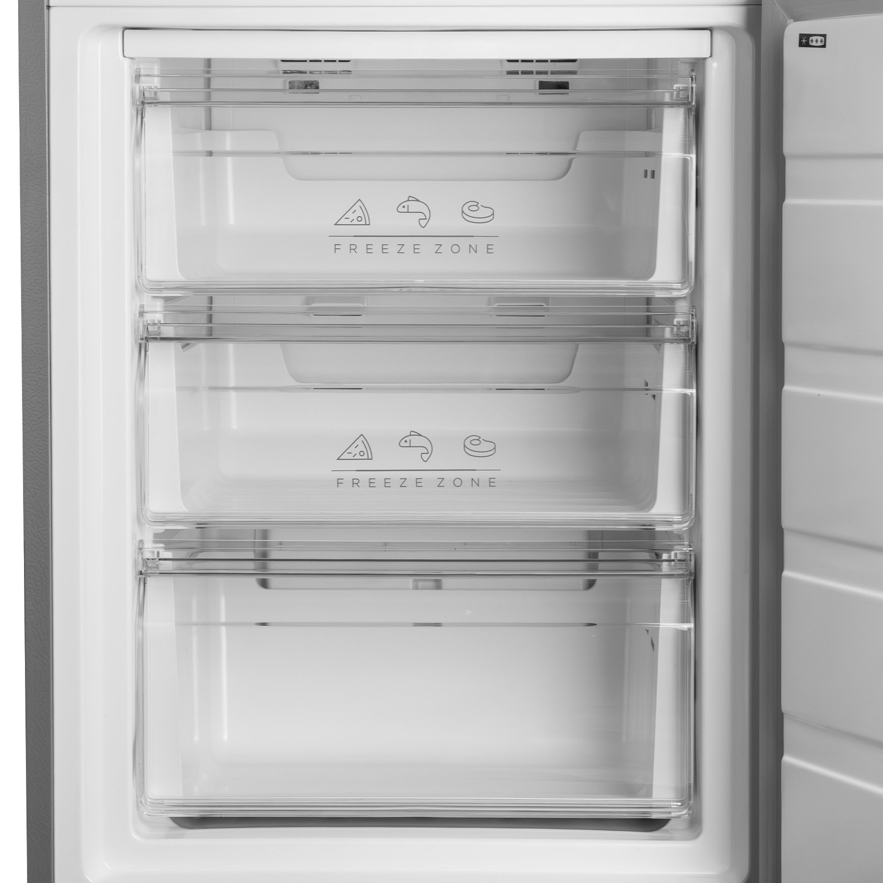 Місткість відсіку для свіжих продуктів до 199 літрів дозволяє розмістити всередині все, що необхідно родині з 4-5 осіб. Тут передбачено чотири скляні полиці, що регулюються за висотою, а також ящик для овочів та фруктів. На дверцятах три окремі пластикові ніші для зберігання яєць, соусів та пляшок з напоями. Морозильна камера на 71 літр має три ящики (два менших і один більший), щоб глибоко заморозити якомога більше м’яса, фруктів, овочів та риби.