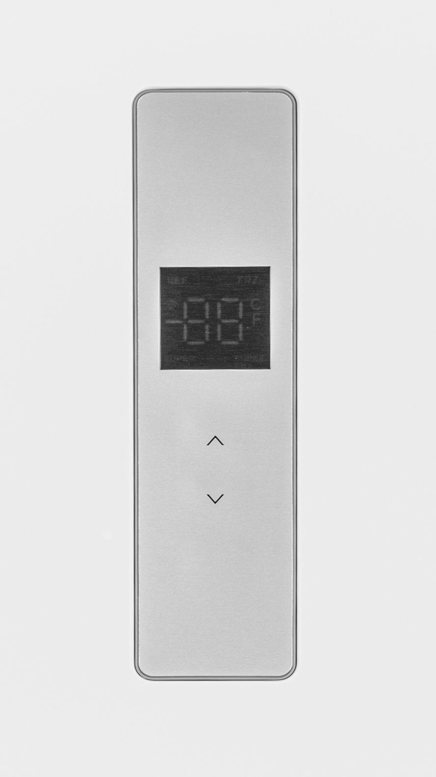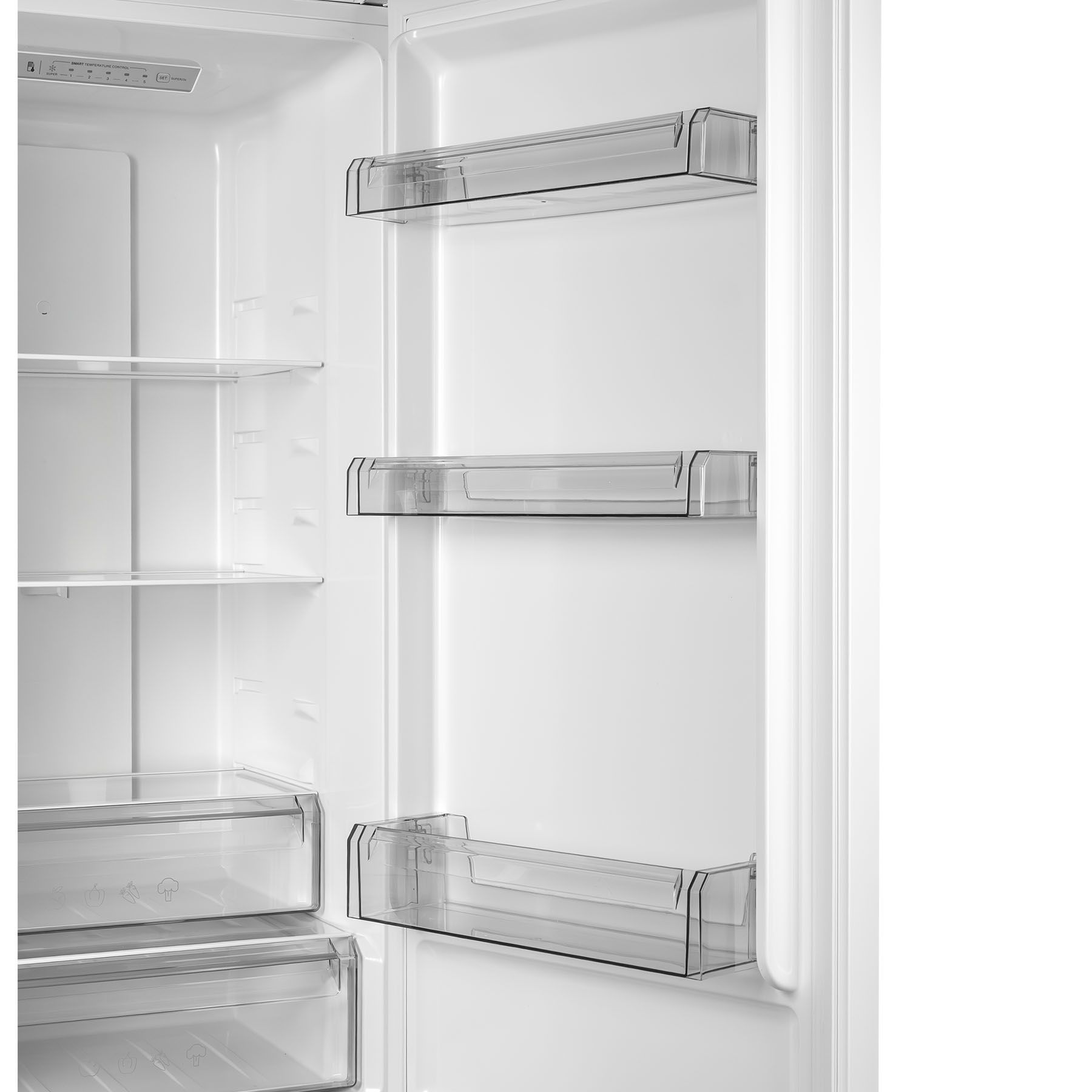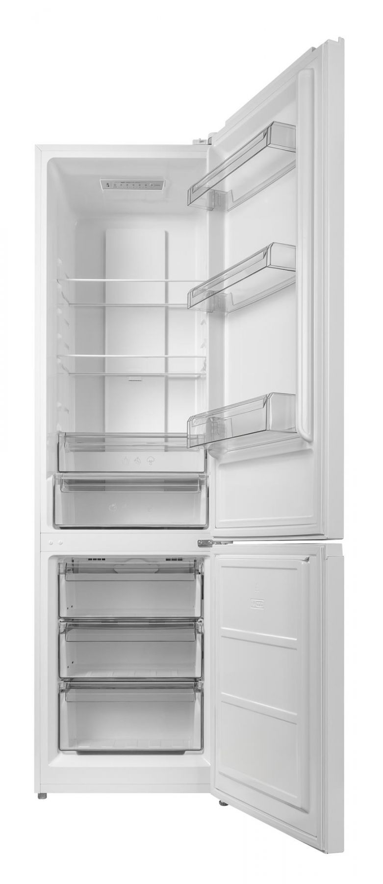 Біла модель NFND-200W поділена на два відділення — холодильник та морозильна камера. Дверцята мають потаємні ручки, що не виступають за межі корпусу. Зверху на фронтальній частині розміщений сенсорний регулятор режимів роботи та індикатор температур. Ніжки з резиновими насадками не дряпають підлогу та можуть регулюватися за висотою, для максимально стабільного встановлення пристрою. Загальні габарити моделі — 595x635x2010 мм.