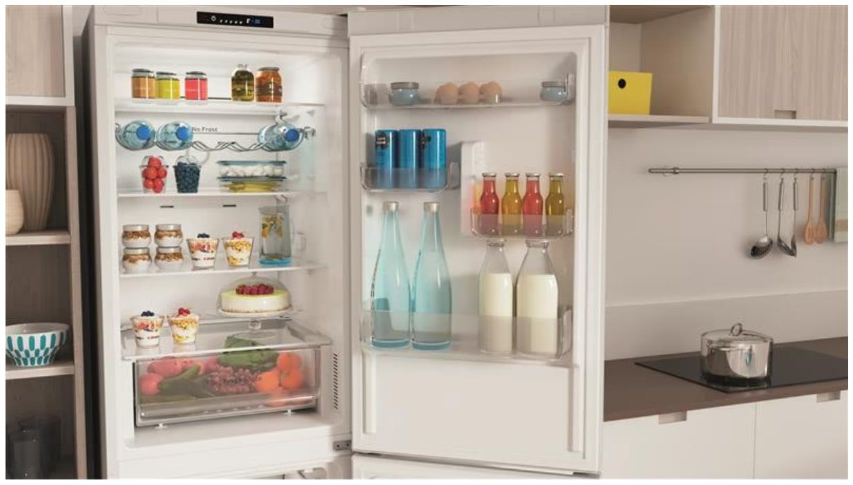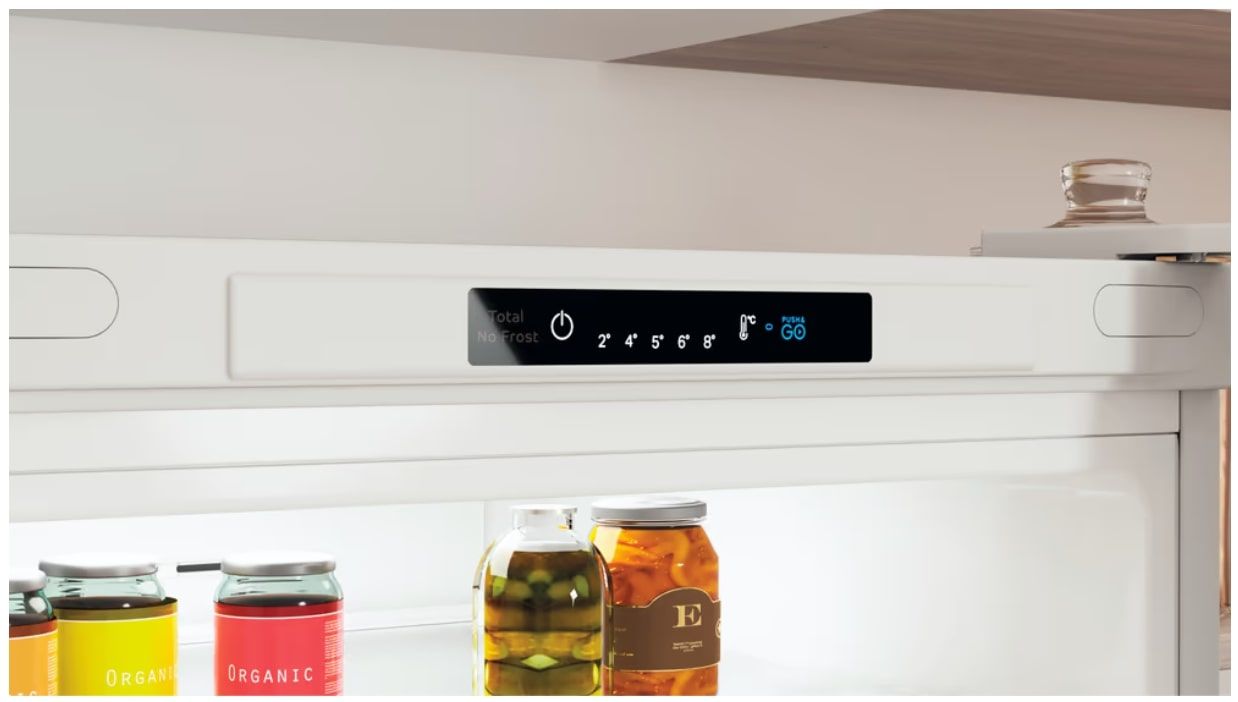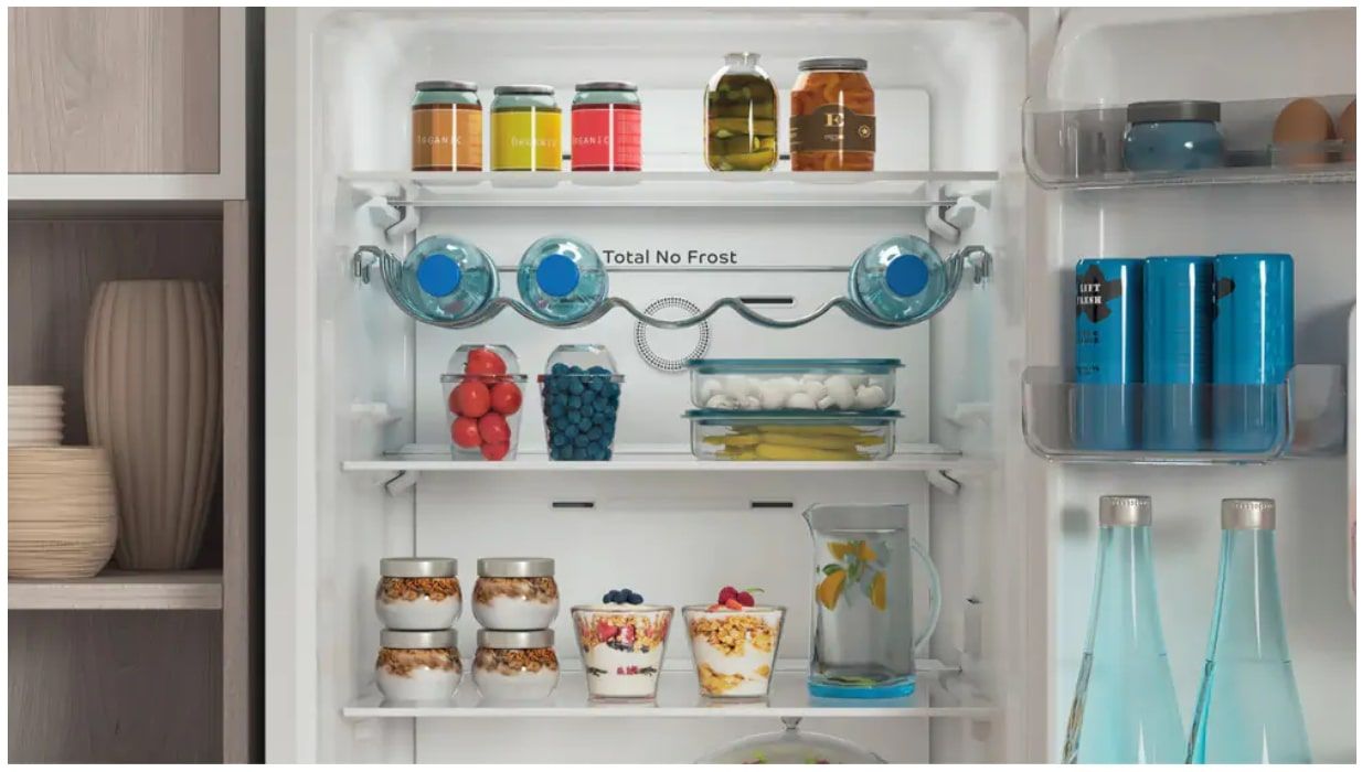 Система Total No Frost забезпечує ідеальну циркуляцію холодного повітря в обох частинах приладу та запобігає утворенню льоду. Це створює оптимальні умови для тривалого зберігання продуктів.