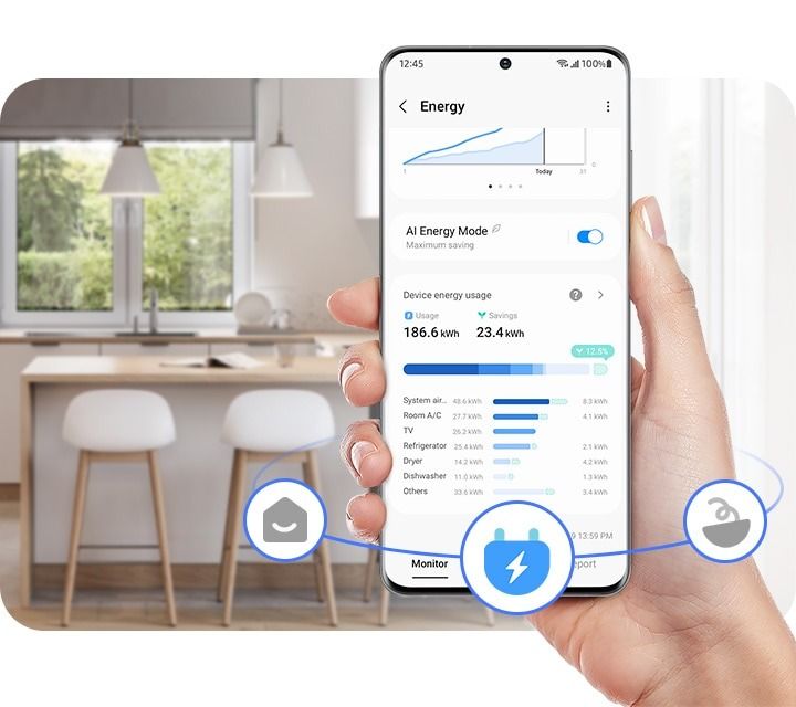 Керуйте споживанням енергії, щоб скоротити викиди вуглекислого газу в атмосферу та заощадити гроші. SmartThings Energy дає поради щодо енергоефективності. Він також відстежує енергоспоживання приладів у режимі реального часу та порівнює його з попереднім місяцем.