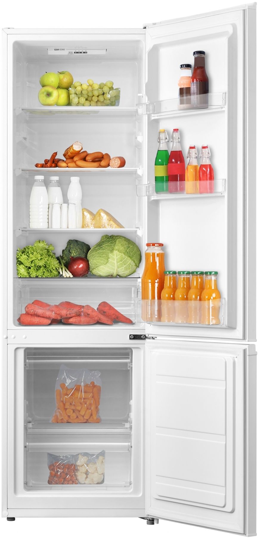 Корисний об'єм холодильника 197 л, а морозильної камери 65 л. Полиці із міцного загартованого скла та прозорий ящик для фруктів та овочів дозволяють використовувати безліч комбінацій зберігання продуктів. Прозорі складні дверцята морозильної камери полегшують доступ до продуктів, що зберігаються.