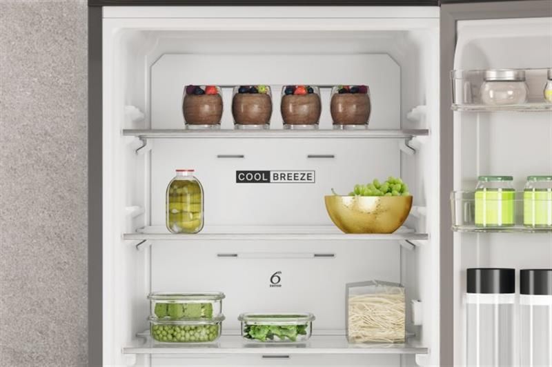 Задня стінка холодильника має ширші отвори, через які випускається холодне повітря. В результаті цього нововведення кожна полиця має стабільну температуру, що дозволяє вам зберігати продукти на будь-якій з них. Добові коливання температури — 0,2°C.