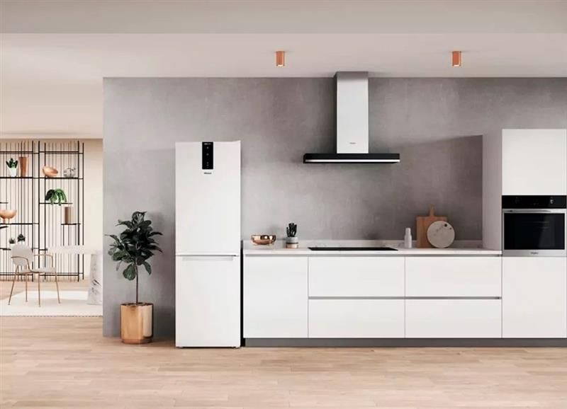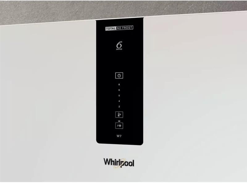Холодильник Whirlpool W7X82OW з нижньою морозильною камерою: з системою охолодження Total NoFrost. З технологією Total NoFrost у холодильнику Whirlpool повітря в морозильній камері автоматично осушується, завдяки чому не потрібно витрачати час на розморожування. Крім того, заморожені продукти не прилипають до стінок, етикетки залишаються розбірливими, а місце для зберігання продуктів - чистим.