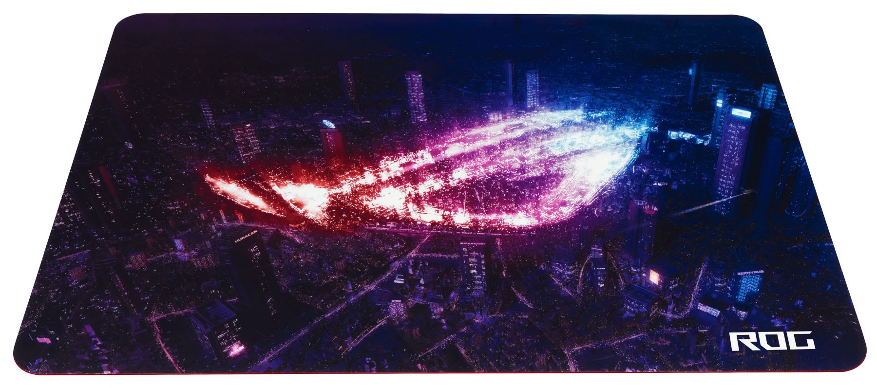 Килимок ROG Strix Slice оформлений у стилі кіберпанк і прикрашений логотипом ROG, який світиться в темряві, задаючи бойовий настрій і геймерську атмосферу.