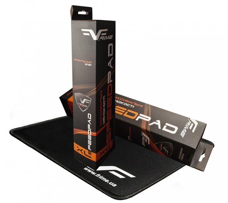 Гумовий килимок Frime з тканевою поверхнею типу Speed, яка гарантує мінімальний опір ковзанню маніпулятора для забезпечення максимальної швидкості пересування курсора.