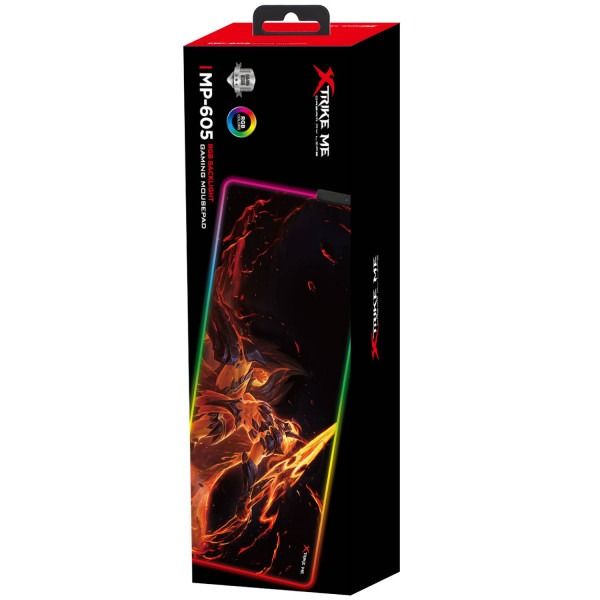Ігрова поверхня великого розміру XTRIKE ME MP-605 підходить для оптичних та лазерних мишок з будь-якою чутливістю та типом сенсора. Ігровий характер килимка підкреслює сміливий динамічний дизайн.