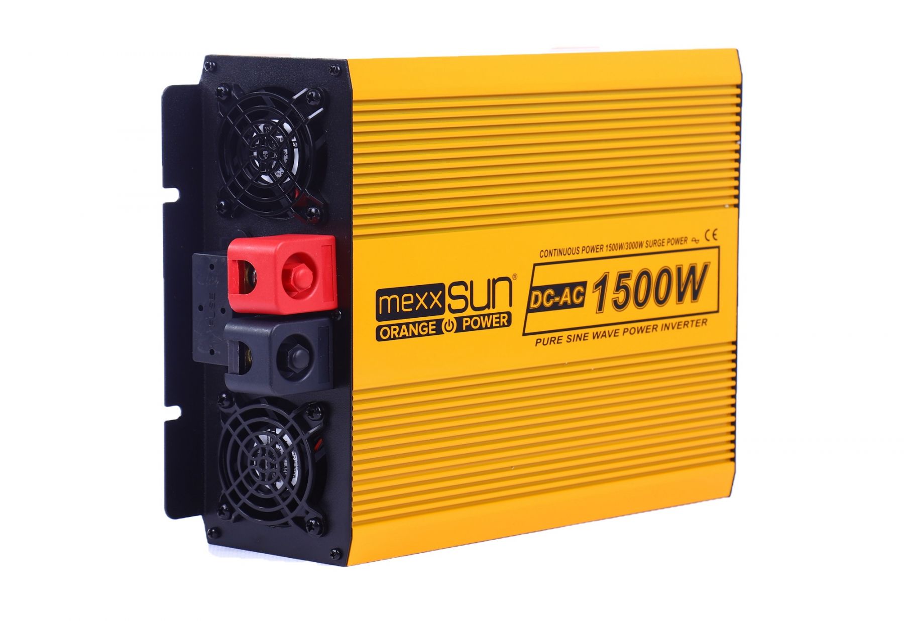 Інвертор напруги Mexxsun MXSPSW-1500, 12V/220V, 1500W з правильною синусоїдою, 2 Shuko, клемні дроти.