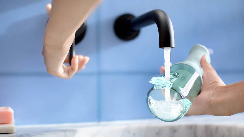 Унікальна хрестоподібна насадка Quad Stream очищає ретельно завдяки хрестоподібному потоку води у чотирьох напрямках, охоплює максимальну площу міжзубних проміжків та ясен.