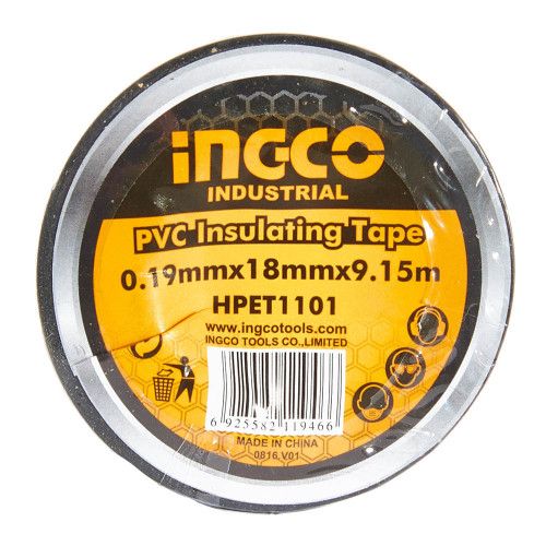 Ізострічка ПВХ 18 мм х 9,15 м чорна INGCO застосовується для електроізоляції при ремонті проводів і кабелів. Матеріал вироби — полівінілхлорид.