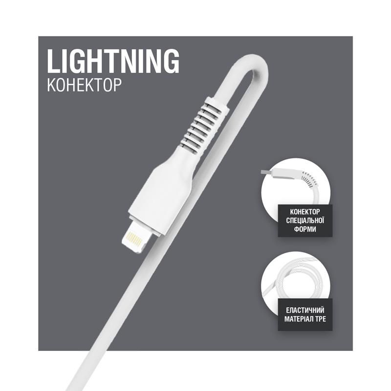 Кабель синхронизации ACCLAB USB to Lightning зручної довжини 1.2 м незамінна річ для заряджання телефонів та планшетів. Виготовлений із пластичного екологічного матеріалу TPE. Конектор спеціальної гнучкої форми. Підтримує швидку зарядку 2.4А