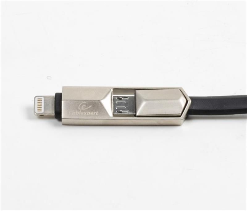 Кабель Cablexpert USB - Lightning + micro USB (M/M), преміум, плоский, 1 м, чорний (CCPB-ML-USB-05BK)