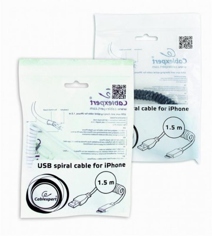 Кабель Cablexpert USB - Lightning (M/M), спіральний, 1.5 м, білий (CC-LMAM-1.5M-W)