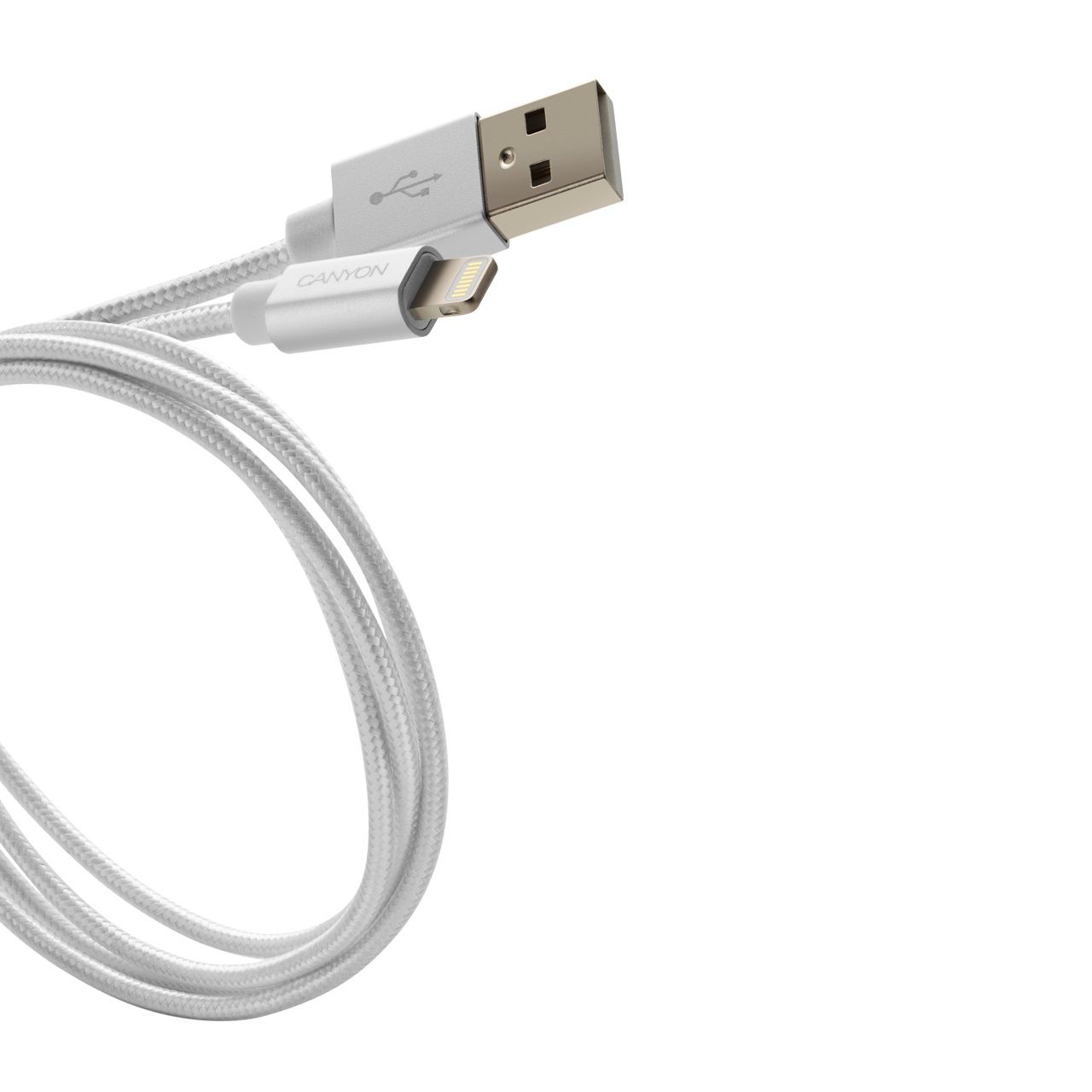 Кабель Canyon USB - Lightning 0.96м, White (CNS-MFIC3PW) в обплетеннi