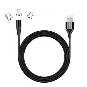 Магнітний кабель 3в1 ColorWay для зарядки - високоякісний магнітний кабель з функцією ротації на 360 градусів для зарядки телефону, планшета або інших електронних пристроїв, які мають роз"єми Lightning, microUSB або Type-C. Кабель швидко заряджає свій пристрій, він має надійний і потужний магніт, а також Led індикатор. Зовні аксесуар обтягнутий шаром нейлонового покриття, завдяки чому кабель важко зігнути або пошкодити. Довжина кабелю становить 1 метр, чого повинно цілком вистачити для комфортного використання вдома або в офісі.