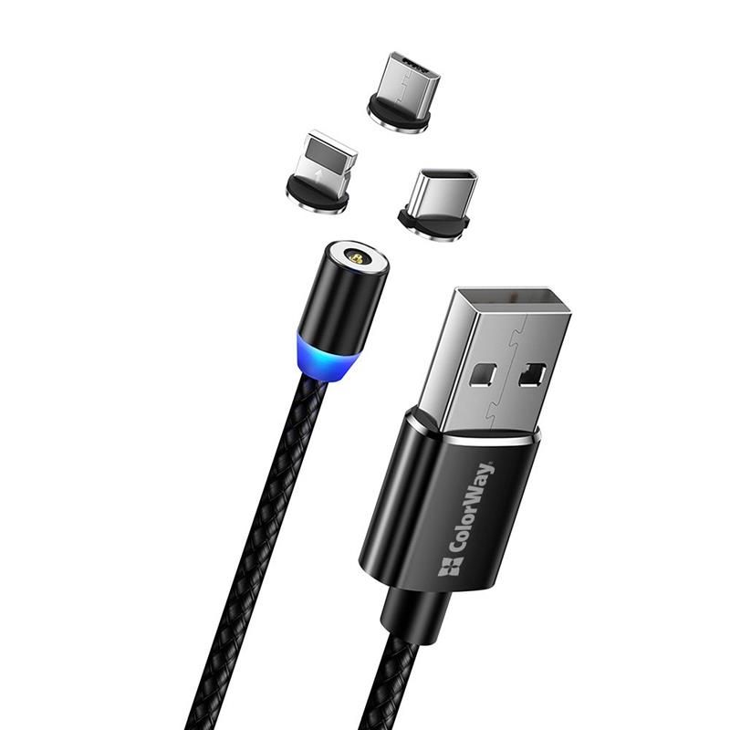 Кабель ColorWay Magnetic USB-Lightning/MicroUSB/USB-C, 2.4А, 1м, Black (CW-CBUU020-BK)
