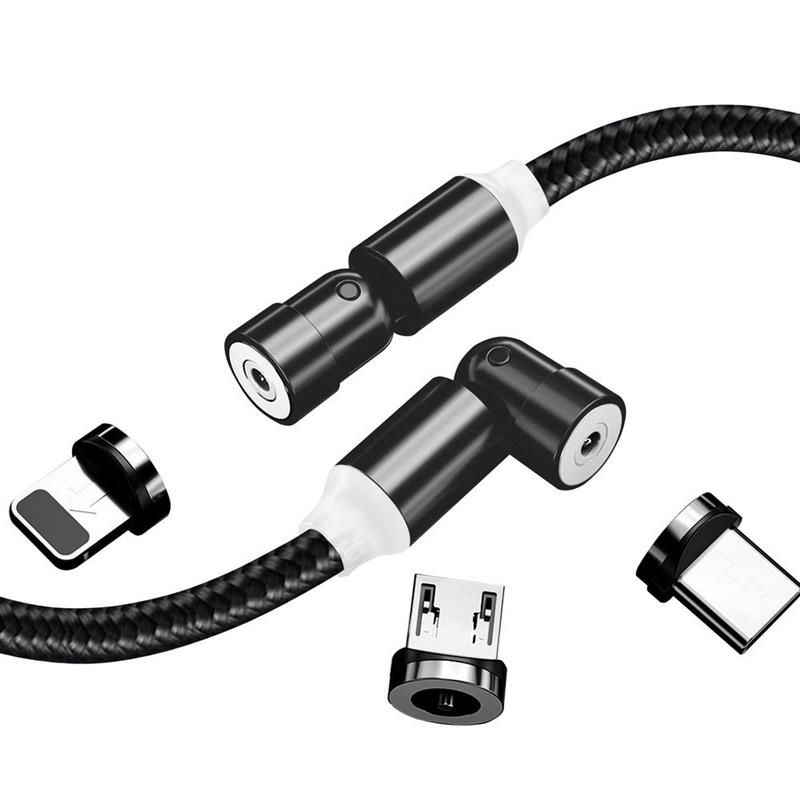 Кабель ColorWay USB-Lightning + microUSB + USB-C Magnetic Rotation 540°, 2.4А, 1м, Black (CW-CBUU037-BK)