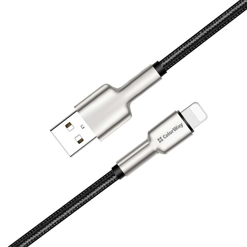 Кабель ColorWay USB-Lightning, head metal, 2.4А, 1м, Black (CW-CBUL046-BK)