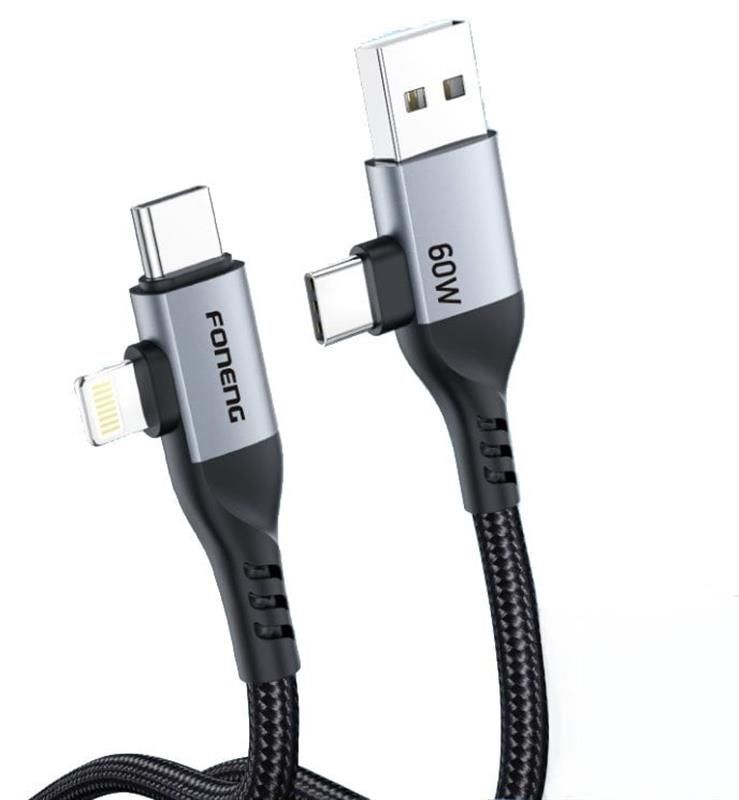 Кабель Foneng X92 4-in-1 (60W) USB/USB-C - USB-C/Lightning (M/M), 1 м, Black (X92-CA-FIO)