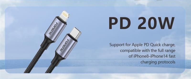 Кабель Foneng X95 Metal Head Braided Cable USB-C - Lightning PD20W 1.2м Black (X95-CA-TCIP)