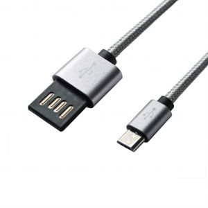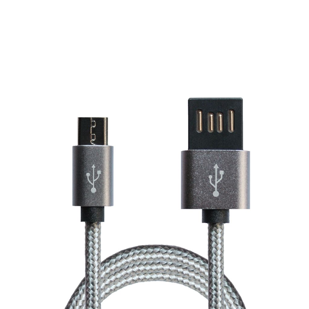 | Кабель Grand-X USB-micro USB FM02 2,1A, 1m, 100% мідь, Grey/Black симетр розєм, дод.захист - обплетення, Гіфтбокс |