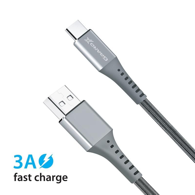 Кабель Grand-X USB - USB Type-C (M/M), 3 A, Fast Сharge, 1.2 м, Grey (FC-12G)