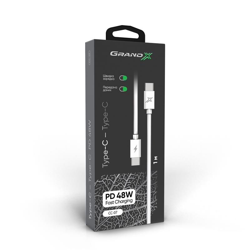 Кабель Grand-X USB Type-C - USB Type-C, Power Delivery, 48W, 1м, White (CC-07)