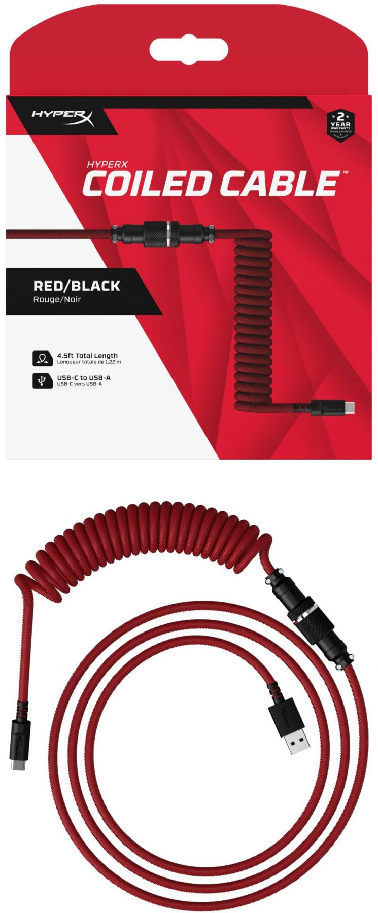 Кабель HyperX USB-A – USB-C, спіральний, 1.37 м Red/Black (6J677AA)