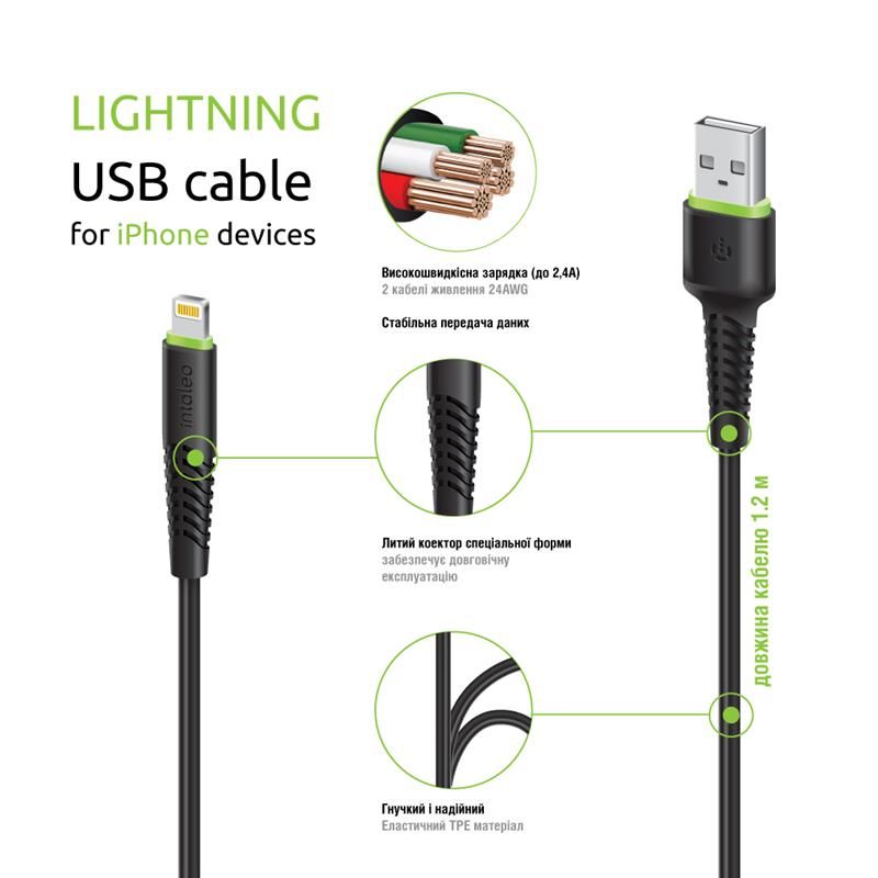 Кабель Intaleo CBFLEXL1 USB - Lightning (M/M), 1.2 м, Black (1283126577673)